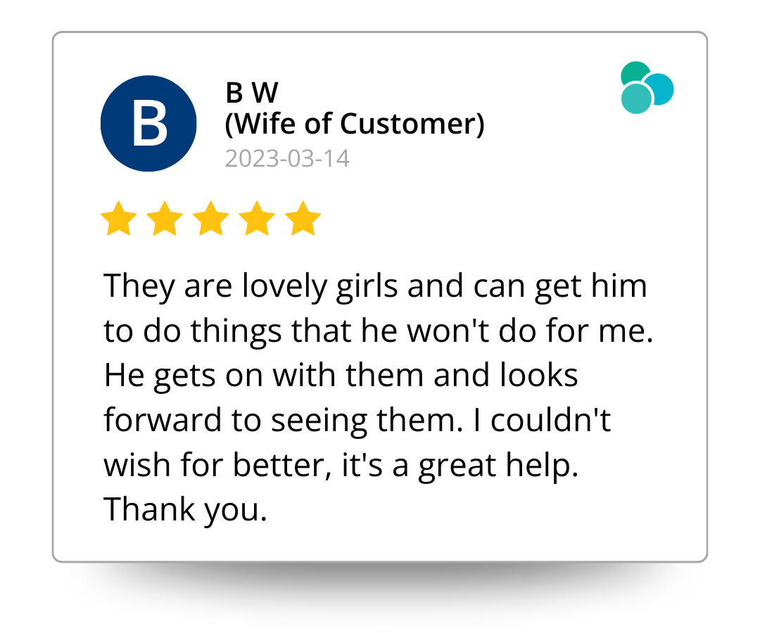 Our energy and happy disposition deliver laughter, whilst our enthusiasm for life keeps you or your family member being themselves, safe in the comfort of their own home for longer.